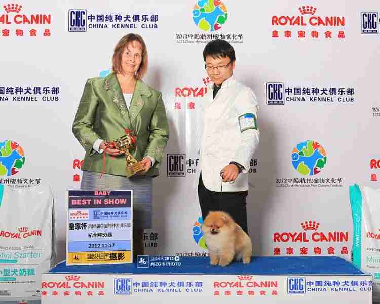 小金蛋3月龄初出茅庐,获得杭州CKC全场幼犬总冠军 小家伙比赛的时候才刚刚3个月多几天,就获得了两位裁判的一致好评,获得全场幼犬总冠军BBIS。 同时他的老爸,铁蛋同学获得博美组的冠军BOB,玩具组的冠军BIG1 ...