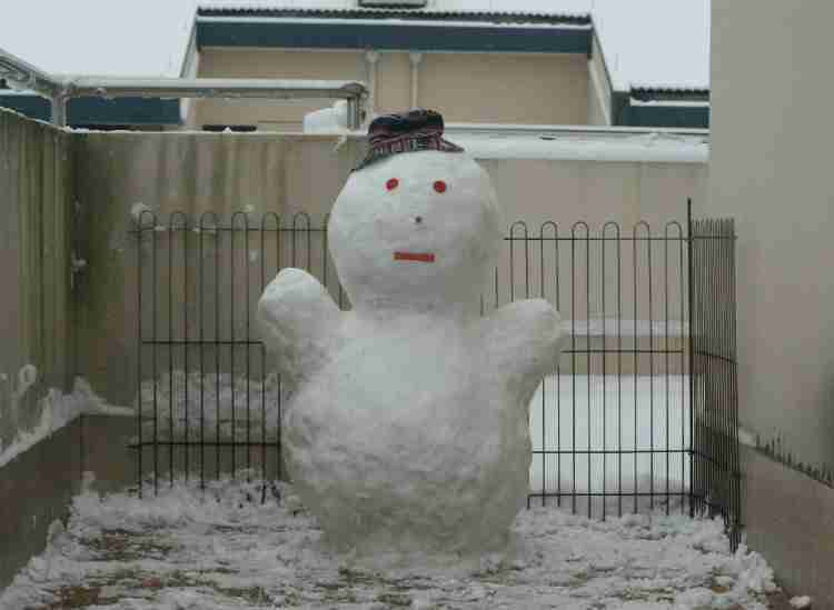 把阳台上的雪堆起来,和儿子一起做了个雪人,小家伙玩的满头大汗,被他妈妈抱去洗澡了,最后由我完工,拍一张照片留念