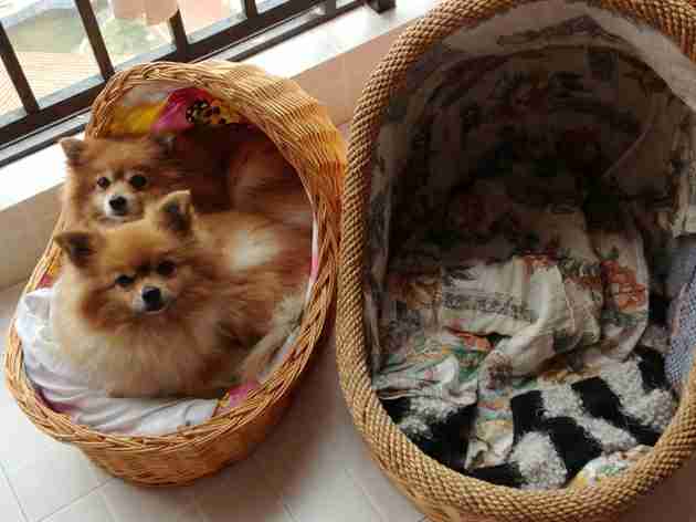 以前睡一大窝现在有了小窝就挤小窝